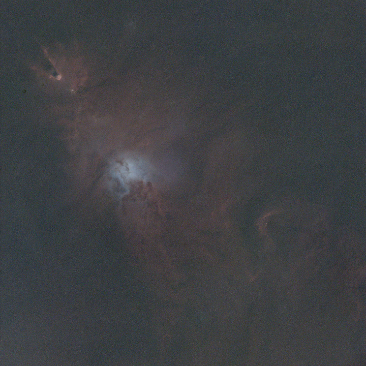 Likewise, the SVBONY SV227 OIII dataset produced an image whose red channel is effectively empty, which is fully consistent with the spectral characteristics of OIII emission. Finally, the SVBONY SV227 SII dataset—targeting ionized sulfur, which lies in the deep red—produced a master where the red channel is strongly dominant and bright, while the other channels carry mostly weak residual signal and background noise.