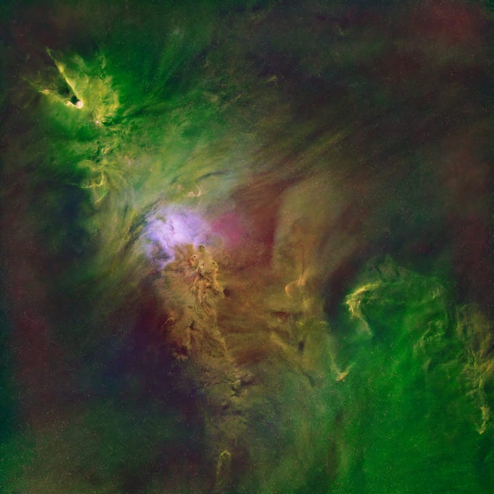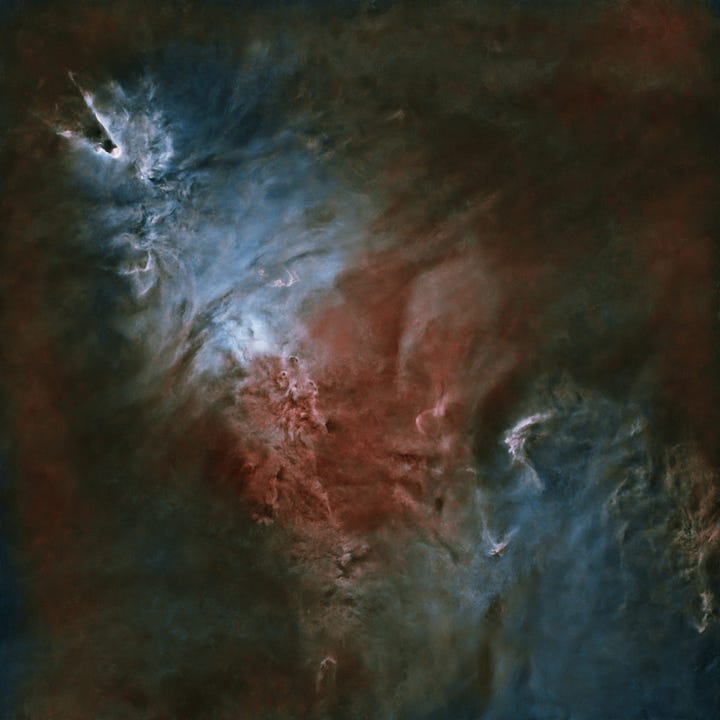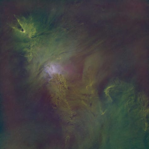 I won’t dive here into the eternal “are these colors real or fake?” debate (I get that question a lot). It’s not a great question as stated. We’re still dealing with visible light emissions—OIII really is in the blue-green/cyan part of the spectrum, Hα is deep red—but the key issue is how much of what we see (or map) in an image corresponds to isolated emission lines vs. broadband light, and how we choose to represent those components in a final RGB rendering. Maybe I’ll do a dedicated post about that. For now the honest answer is: it depends, and the “truthfulness” depends on the specific mapping and on what you mean by “true”.